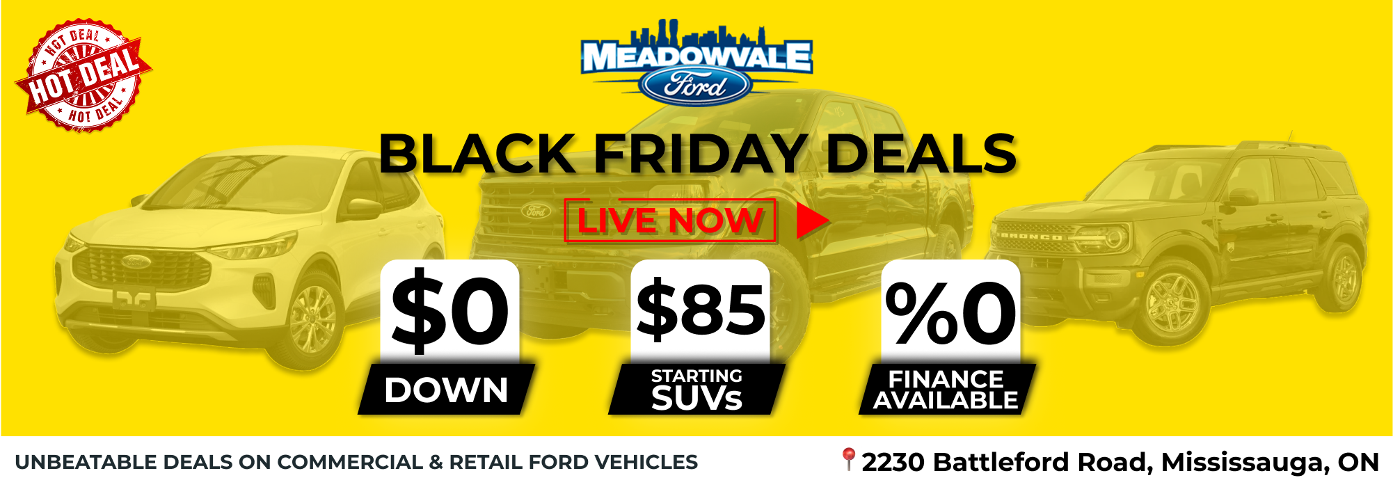 As Ontario’s #1 Retail Commercial Dealer, Meadowvale Ford has proudly served Ontario and the Greater Toronto Area for over a decade — delivering exceptional deals, award-winning service, and over 4,000 new vehicles sold last year alone.